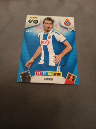 Cromo de fútbol Panini Adrenalyn XL. - Jugador: Urko. - Número de cromo: 136. - Estadísticas: 77, 77, 64, 218.