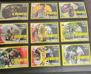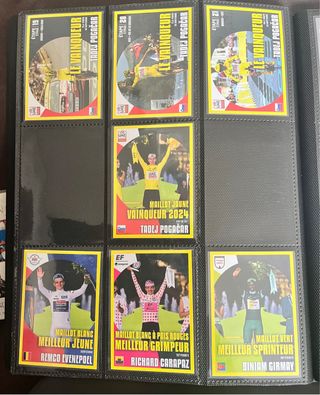 Colección de cromos del Tour de Francia 2024 de Panini, edición especial. - Incluye cromos de Tadej Pogačar (Maillot Jaune Vainqueur 2024, Etapa 19, Etapa 20, Etapa 21). - Incluye cromo de Remco Evenepoel (Maillot Blanc Meilleur Jeune). - Incluye cromo de Richard Carapaz (Maillot Blanc à Pois Rouges Meilleur Grimpeur). - Incluye cromo de Biniam Girmay (Maillot Vert Meilleur Sprinteur). NO LEER Lamine Yamal Panini Topps Rookie nba champions uefa fifa este ronaldo Messi card cromo firma auto adrenalyn megacrack raro rare mundial euro psa grade coleccion futbol nfl upper deck prizm attax match mastantuono messi lamine yamal marado