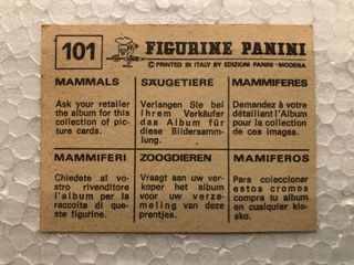 Lote de 10 cromos de PANINI coleccion MAMIFEROS. Son los numeros 37, 55, 57, 59, 101, 146, 148. 155. 174 y 197. Miden 6,5cm x 5cm. Perfecto estado.