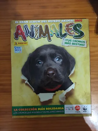 Álbum de cromos Animales de Panini del año 2014. Tiene bastantes cromos pegados ya.