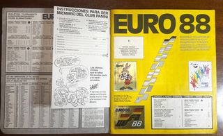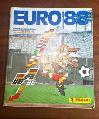 Álbum de cromos de la Eurocopa 1988 celebrada en Alemania. Incompleto, faltan unos 40 cromos. - Portada con el logo de EURO 88. - Ilustración de la mascota oficial. - Incluye el logo de Panini.