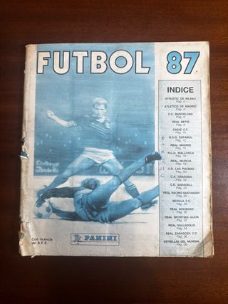 Álbum de fútbol FUTBOL 87 de Panini. - Falta la portada y contraportada - Faltan solo 5 cromos: 176, 198, 253, 257, 259, - Licencia de A.F.E. Año 1987 - Incluye índice de equipos como Athletic de Bilbao, F.C. Barcelona, Real Madrid, entre otros. - Páginas numeradas desde la 2 hasta la 38.
