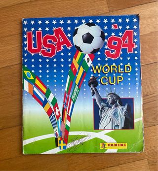 Álbum de cromos Panini de la Copa Mundial de la FIFA USA 94. Este álbum está completo. Cubierta con diseño de estrellas y banderas.Incluye imagen de la Estatua de la Libertad. Logotipo de Panini en la parte inferior. 48 paginas y 444 cromos. 24 selecciones