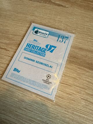 Dominik Szoboszlai 2022 Topps Merlin Heritage 97 Action Cracked Ice Card Leipzig ---- carta/ cromo. Panini. Topps. Patch, jersey. Messi, Cristiano Ronaldo, Neymar, Mbappé, Haaland, Lewandowski, Vinícius Jr., Modrić, Bellingham, De Bruyne, Salah, Benzema, Griezmann, Pedri, Gavi, Ter Stegen, Foden, Saka, Rashford, Alisson, Courtois, Valverde, Rúben Dias, Kimmich, Kane, Son, Odegaard, Lautaro Martínez, Dybala, Rodrygo, Cancelo, Frenkie de Jong, Bruno Fernandes, Nkunku, Lamine Yamal, Bruno Guimarães, Martínez, Joško Gvardiol, Enzo Fernández, Sandro Tonali, Raphael Varane, Federico Chiesa, João Félix, Reece James, Jude Bellingham Megacrack REAL MADRID FC BARCELONA FCB BARÇA