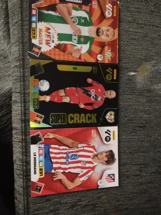 Colección de cromos de fútbol Panini. - Cromos de la colección Super Crack. - Incluye jugadores como Amrabat, Isi y Le Normand. - Algunos cromos son de edición especial 'New Master'.