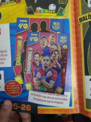 Colección de cromos de fútbol Panini. - Incluye cromos de edición limitada y diamante. - Jugadores como Gavi, Balde y Cubarsí. - Cromos de Crack y Edición Limitada. - Cromos de Diamante y Edición. - Cromo Super Crack de Cubarsí.