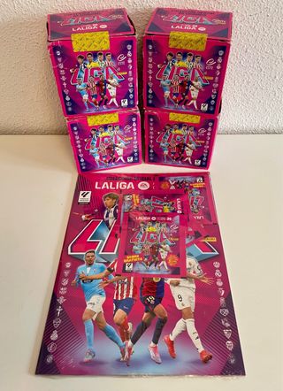Colección de sobres de cromos de la Liga Este de Panini. - Incluye 4 cajas con 50 sobres de la colección oficial. - Cada sobre contiene 6 cromos de jugadores de LaLiga. - Album con 5 sobres.