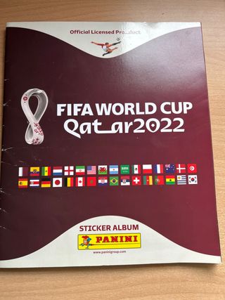 Pegatinas pegadas con cuidado, hojas bien cuidadas también . La portada al ser tapa blanda algo desgastada pero nada roto ni grave. Álbum de cromos Panini del Mundial de Qatar 2022. ¡Perfecto para completar tu colección! - Álbum oficial con licencia. - Tapa blanda. - Incluye todas las banderas de los países participantes. Figuras ,espadas sables láser y más colecciones en mi perfil. 👍
