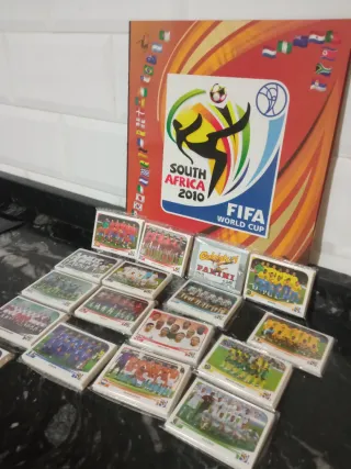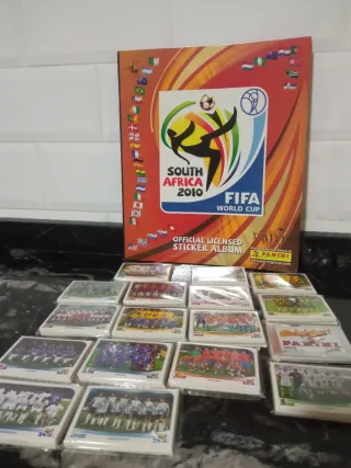 Colección completa del Mundial de Sudáfrica 2010 de Panini con todos los cromos sin pegar. Se entrega con álbum plancha, sin cromos - Todos los cromos sin pegar, incluidos los cotizados Messi y Cristiano Ronaldo - Incluye álbum vacío - En perfecto estado de conservación