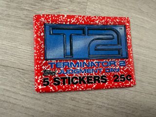 Sobre de cromos de Terminator 2 (T2 Judgment Day) de Topps. Sobre cerrado sin abrir, conserva el envoltorio original con señales normales del paso del tiempo. Ideal para coleccionistas de cine y merchandising de los 90, o para quien quiera revivir la emoción de abrir un sobre tres décadas después. Gastos de envío 5 € por MRW. Preferible InPost antes que Correos si se usa la app. Las fotos son parte de la descripción. Palabras clave: Topps, Panini, Este, Ruiz Romero, Maga, E-Max.
