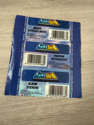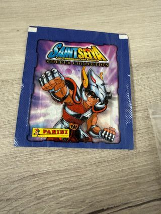 Sobre de cromos cerrado sin abrir de Los Caballeros del Zodiaco, Saint Seiya, muy buscado. Es de Panini. Gastos de envío 5 € por MRW. Preferible InPost antes que Correos si se usa la app. Las fotos son parte de la descripción. Palabras clave: Topps, Panini, Este, Ruiz Romero, Maga, E-Max.