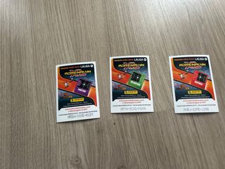 Colección de cromos de fútbol de la Liga Panini, incluyendo ediciones limitadas. - Cromos de jugadores como Modric, Kroos, James Rodríguez y Courtois. - Incluye cromos de Top Mega y Pasador. - Algunos cromos son de Edición Limitadas