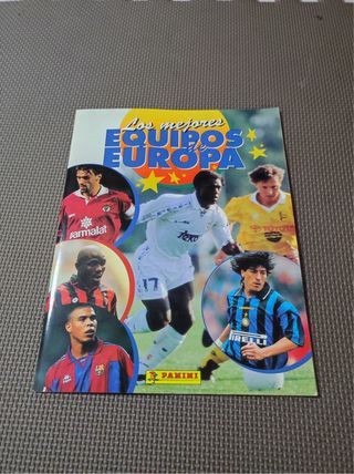 Álbum de cromos Panini de los mejores equipos de Europa. - Portada con varios jugadores de fútbol. - Incluye el logo de Panini. Semivacio!!