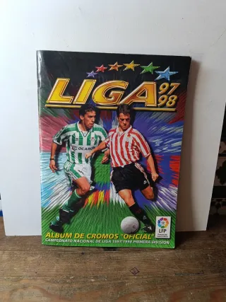 Álbum de cromos oficial de la Liga 1997/1998. - Cubierta con diseño de jugadores y estrellas. - Incluye el título Liga 97 98. - Detalla Campeonato Nacional de Liga 1997/1998 Primera División. Todos los huecos con cromos pegados exceptuando algún último fichaje muchos colocas y doble jugador bien pegados algunas páginas centrales desgrapadas En muy buen estado en general Cromos Panini liga este cromos de fútbol antiguos Si tiene alguna duda por favor pregunte sin compromiso antes de comprar no acepto devolución