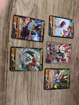 Colección de cromos de Pokémon. - Urshifu VMAX - Sandaconda VMAX - Lycanroc VMAX - Urshifu V - Medicham V - Zamazenta V - Decidueye V - kleavor V
