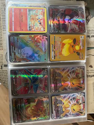 ATENCIÓN!!! NO HAGO ENVÍOS PARA QUE NO HAYAN PROBLEMAS. Colección de cartas de Pokémon. Ignoro si son originales o fan art. No tengo ni idea de esto. Ofertas serias y por favor un poco de seriedad que ya cansa el que si las compro y luego no y luego si... - Charizard x EX - Vaporeon EX - Flareon EX - Jolteon EX - Umbreon EX - Eevee EX - Espeon EX - Leafeon EX - Glaceon EX - Sylveon EX -Mewtwo EX No se aceptan devoluciones.