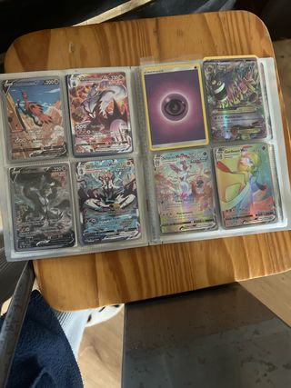 Se venden 2 álbumes de cartas Pokémon, perfectos para coleccionistas. 30€ cada uno 160 cromos en cada uno - Contienen varias cartas de Pokémon. - Incluye cartas como Victini, Charizard VMAX, Flareon V, Jolteon V, Vikavolt V y Dracozolt VMAX.