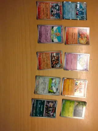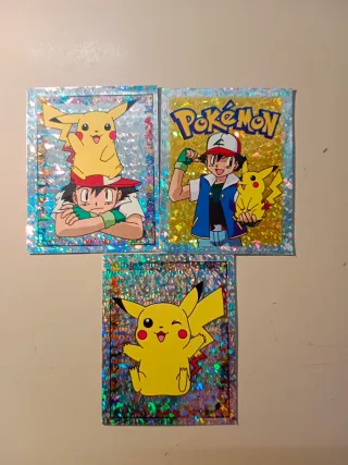 Colección de cromos de Pokémon. - Incluye cromos especiales (cartas con brillo). - Variedad de personajes. - Ideal para coleccionistas.