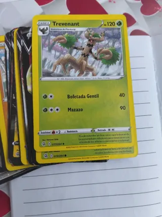 Colección de cromos de Pokémon. - Incluye cartas de Trevenant y Dewpider. - Cartas con números visibles: 264, 017, 019, 021, 023, 040, 045, 048, 051, 074, 079, 103, 104, 113, 114, 142, 146, 156, 157, 158, 176, 185, 201, 217, 218, 239.