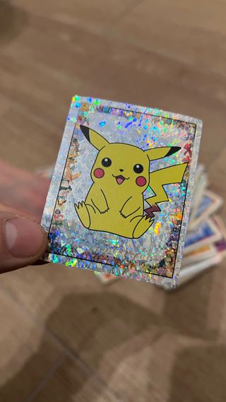 Colección de cromos de Pokémon del año 1999. TODOS LOS QUE VES EN LA FOTO - Incluye el popular personaje Pikachu. - Diseño brillante y holográfico. - Ideal para coleccionistas.