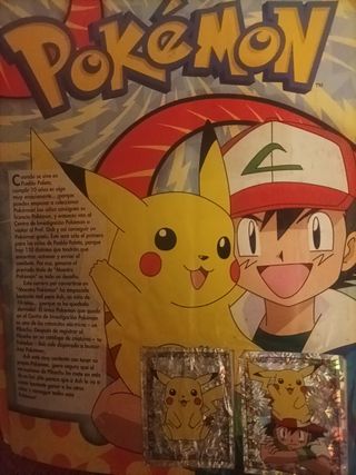 Álbum de cromos de Pokémon de la colección de Merlin de 1999. Incluye la portada con Ash y Pikachu. Le falta el cromo Nº152 - Incluye póster de regalo.