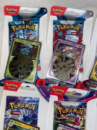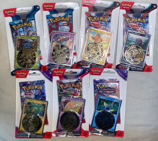Pokemon TCG Trading Cards Game Lote de 7 blister, cada uno compuesto por un sobre, una moneda y una ficha promo: Scarlet and Violet Spathra Obsidian Flames Wooper y Pawmi Paradox Rift Sinostea y Pineco Tenporal Forces Bellibolt y Carvanha En ingles 🇬🇧 Todos en perfecto estado ENTREGA EN MANO EN MADRID Palabras clave Cards fichas tarjetas cromos primera edición trading cards game colección figura figuritas edición limitada juego Pokémon Nintendo switch ds 3Ds letra go base set hilo holográfica shiny premium TGC tazos caps chaps moneda juego fichas ETB lata blíster 151 Kanto VMAX EX