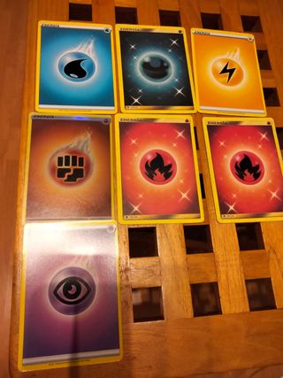 Lote 4 cromos Pokemon Energía (+1 repetido) y 6 cromos Pokemon Entrenador. En perfecto estado, según fotografías adjuntas. Hago envíos por Wallapop.
