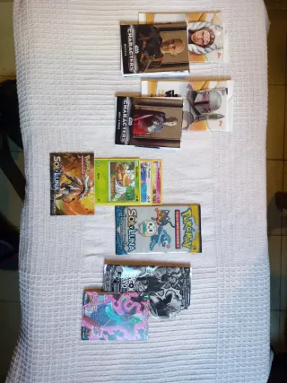 Lote variado de cromos y paquetes de cartas de coleccionismo. - Paquete de cartas Pokémon Sol y Luna. - Paquetes de cartas Dragon Ball Super Card Game. - Paquetes de cartas Star Wars The Mandalorian.