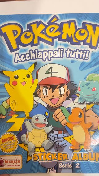 Álbum de cromos de Pokémon, completo Serie 2, de Merlin Collections. Incluye un póster. Estado 8/10 solo la pagina del poster esta despegada pero estaos perfecto las hojas del album - Portada con Pikachu, Ash, Bulbasaur, Squirtle y Charmander. - Título: Acchiappali tutti! - Incluye póster especial para las figuritas.