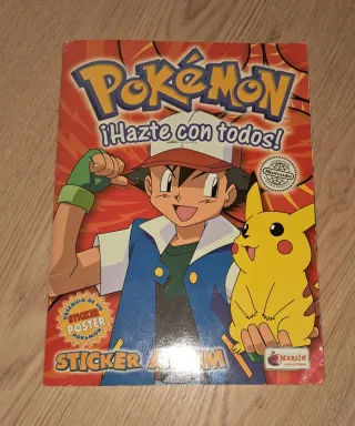 Álbum de cromos de Pokémon, con la frase ¡Hazte con todos!. - Portada con Ash y Pikachu. - Incluye el logo de Nintendo. - Título Sticker Album en la parte inferior.no hago envíos