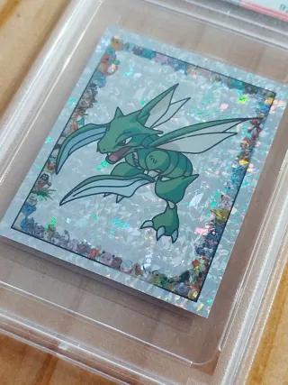 Cromo antiguo de pokemon, realizado en tipo Prisma (los primeros Holograficos) marca Merlin. Tarjeta coleccionable de Pokémon Scyther-Prism de 1999, certificada por PSA. - Año: 1999 - Marca: Merlin - Pokémon: Scyther - Tipo: Prism - Grado PSA: 8 (NM-MT) - Número de serie PSA: 92397279