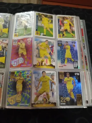 Colección de cromos del Villarreal CF. - Incluye cromos de jugadores como Pau Navarro, Denis Suárez, Parejo, Riquelme, Logan Costa y Kambwala. - Cromos de la colección NGK Panini. - Algunos cromos son 'Master Rookie' y 'Mega Estrella'.