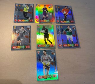 Colección de cromos de fútbol Adrenalyn XL de La Liga de la temporada 2010/11. - Incluye cromos de jugadores como Valdez, Camuñas, Aduriz, Baptista y Messi. - Cromos con acabados especiales y brillantes. - Cada cromo muestra estadísticas y el nombre del jugador.