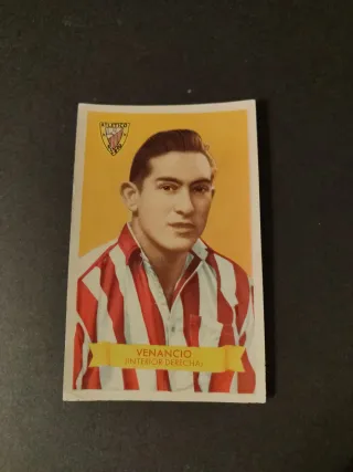Cromo de fútbol del jugador Venancio. - Posición: Interior Derecha. - Incluye escudo del Atlético.