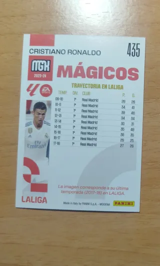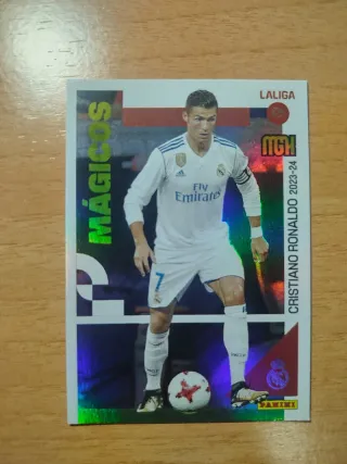 Colecciona este cromo de Cristiano Ronaldo de la colección Mágicos de La Liga. - Cromo de Cristiano Ronaldo. - Colección: Mágicos. - Liga: La Liga. - Marca: Panini. - Temporada: 2023-24.