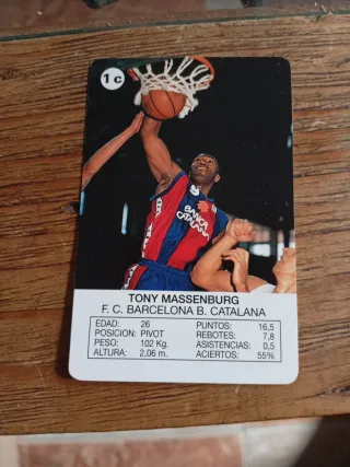 Cromos de baloncesto de Tony Massenburg, jugador del F.C. Barcelona B. Catalana y muchos cromos masen total 33 cromos - Temporada ACB 1993-1994. - Posición: Pívot. - Altura: 2,06 m. - Peso: 102 Kg. - Puntos: 16,5. - Rebotes: 7,8. - Asistencias: 0,5. - Aciertos: 55%.