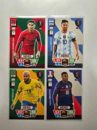 Colección de cromos de LaLiga, incluyendo jugadores del FC Barcelona y Real Madrid. - Cromos de jugadores. - Temática de fútbol español. - Cada carta por 30 centavos - Todo por 4 €