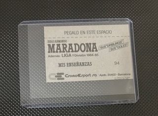 Cromo del futbolista Diego Armando Maradona. Imagen del jugador en acción. Diseño clásico de coleccionismo. Temporada 84/84 Protegido con doble protección de plástico.