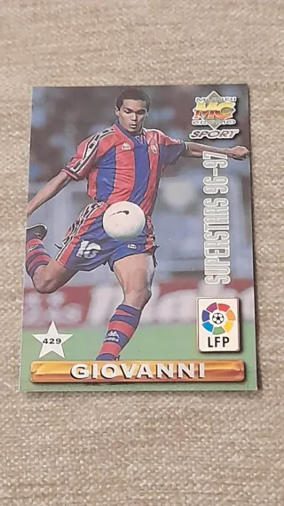 Cromo de fútbol de la temporada 1996-1997. Por una cara Ronaldo. Por la otra cara Giovani. Envio certificado y protegido. Más cromos en mi perfil.