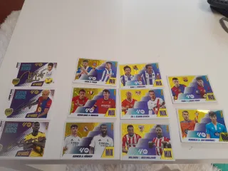 Colección de cromos Panini de la temporada 25/26. - Incluye 23 cromos, todos juntos. - Diseños de la colección Super Kids y Mix,kromix,míster cero. - Algunos cromos presentan firmas. - Cromos de jugadores como Pedri, Lamine Yamal, Asensio, Rüdiger, Williams, Nico Williams, Minguenza y Javi Rodríguez.