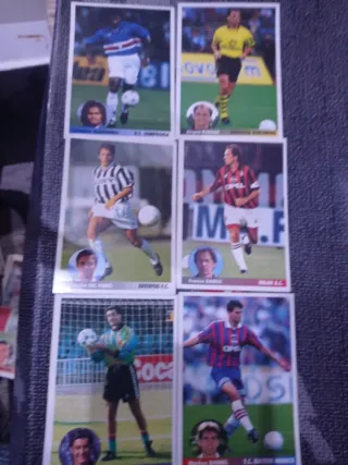 Colección de cromos de fútbol vintage, con jugadores como Manjarín, Caminero, Pacho Maturana, Lorenzo Serra, Amaivica y César Sánchez. Consultar precio tengo más - Cromos de jugadores de fútbol. - Diseños clásicos y coloridos. - Ideal para coleccionistas.