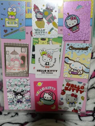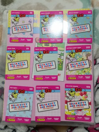 Colección de cromos de Hello Kitty y sus amigos. Números: 53,138,135,118,202,62,39,93 y 92