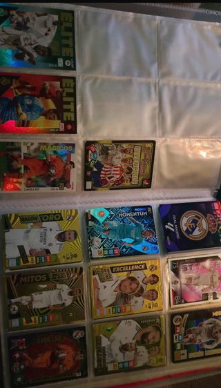 Se venden 6 álbunes de cromos no están completos y hay buenas unidades , premiun oro , diamante meteorito, balón oro, supercrak , doble Ironman , tridente, guantes de oro , ídolo ejemplos Edición Limitada de jugadores destacados como Kroos, Mbappé, Ferran Torres, Dembélé, Morata, Wagué, Christensen, Álvaro Rodríguez, Gragera y Larin. Premium Oro de jugadores top y cartas con acabado dorado. Diamante y Meteorito, con efecto holográfico y diseño exclusivo. Balón de Oro y Excellence, premiando logros y rendimiento de los jugadores. Supercrack, Doble Ironman y Tridente, destacando grupos de jugadores o habilidades especiales Ídolo etc
