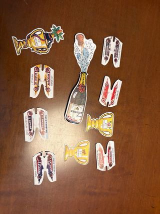 Colección de cromos troquelados con temática de Fórmula 1 de Renault. - Incluye varios diseños. - Cromos con detalles de coches y trofeos.
