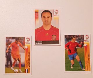 26 cromos de la colección Panini de la Eurocopa 2008: Jugadores como Andrés Iniesta, Ruud van Nistelrooy, Fernando Torres, Ivan Rakitić, Miroslav Klose, Mario Gomez, Rüstü Recber, Pepe Reina, Simão, Miguel o Patrice Evra. - Incluye escudos de Austria y Grecia. 8 cromos Panini de la Euro 2016, como Marco Reus, Bernardo Silva o el escudo de Italia. Todos como nuevos.