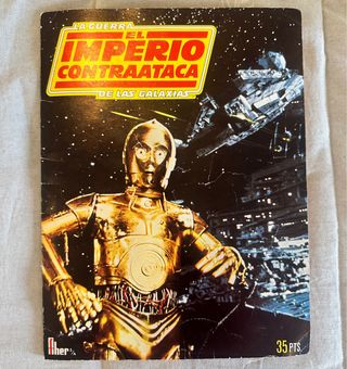 Álbum de cromos de la película Star Wars: El Imperio Contraataca. - Portada con C-3PO y el Halcón Milenario - Título en español. - Cromos faltantes: 35