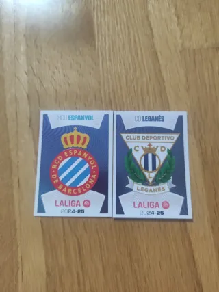 Lote de 9 cromos de la temporada 2024-2025 de LaLiga. - Cromo escudo de RCD Espanyol. - Cromo escudo de CD Leganés. - Cromo escudo de Levante UD. - Cromo escudo de Málaga CF. - Cromo de Dani Carvajal. - Cromo de Nico Williams show. - Cromo de Bryan Gil último fichaje. - Cromo de Jaime Mata último fichaje. - Cromo de Manu Fuster último fichaje.