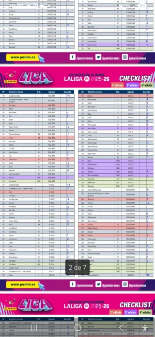 Lote de cromos de la colección LaLiga 2025-2026. Más de 470 cromos sin repetir e todas las entregas, mayormente de la primera Un extra gold Y 280 cromos repetidos. Alaves 21, bilbao 20, Atlético Madrid 18, barcelona 21, betis 20, celta 19, elche 21, español 18, getafe 17, girona 18, levante 19, real Madrid 21, Mallorca 21, osasuna 18 ,real oviedo 16, rayo 18, real sociedad 19, Sevilla 20, Valencia 21, villareal 20,Kids 15, kromix 11, cero 13, mix 21, fichajes 32.
