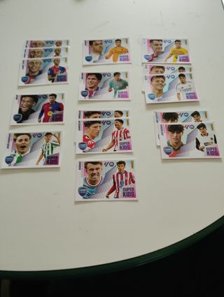 Colección de cromos de la Liga Super Kids. - Cromos de jugadores de fútbol. - Incluye el número 40 en algunos cromos. - Marca: ADN LALIGA. - Cromos de la colección Super Kids.