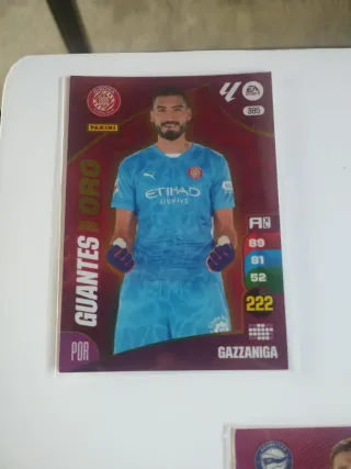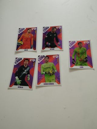 Conjunto de 5 cromos de la colección Adrenalyn, todos de la categoría Guantes de Oro. - Cromo de Gazzaniga. - Cromo de Sivera. - Cromo de David Soria. - Cromo de Ter Stegen. - Cromo de Joan García. También se venden por separado 2€ cada uno Lote completo 5€